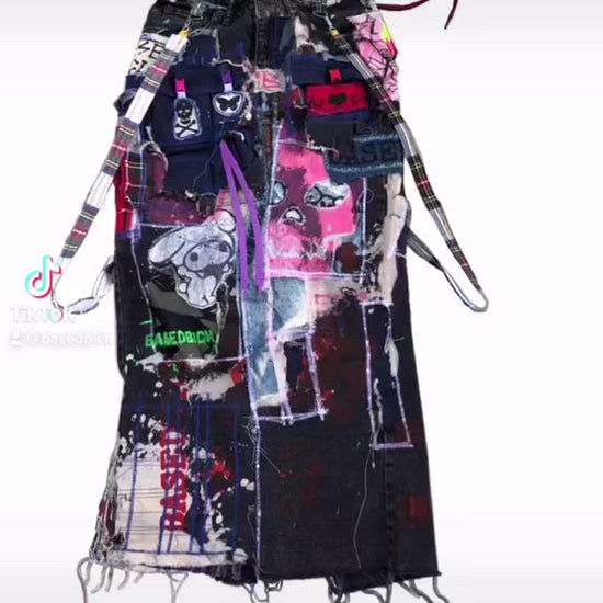 BASEDBICH tripp inspired patch work skirt with lots of cargo pockets and adjustable waist