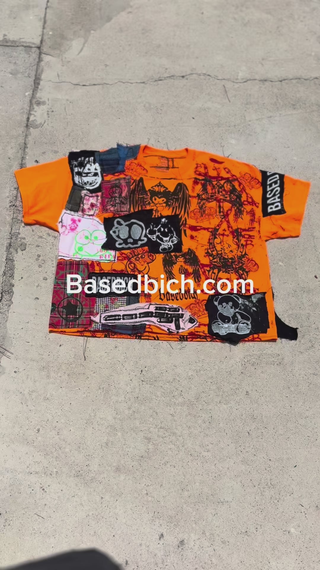 Hand-sewn, hand-printed, and fully decked out in custom patches, raw edges, and stitched-up madness. Loud orange base, blackout ink hits, alt-core graphics, and a fit built from scratch. Everything on this piece is touched by hand — no factory, no repeats, no clones.