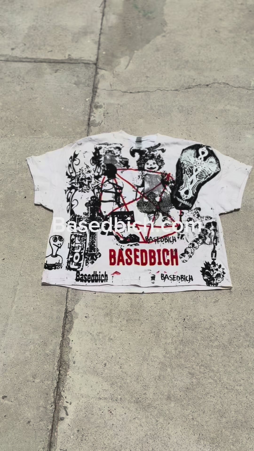It’s a full-blown visual riot — hand-printed front and back with cult references, anti-christian flips, punk legends, erotic chaos, and raw outsider art. Custom red stitching forms a pentagram across the chest, sealed in blood and bad intentions.